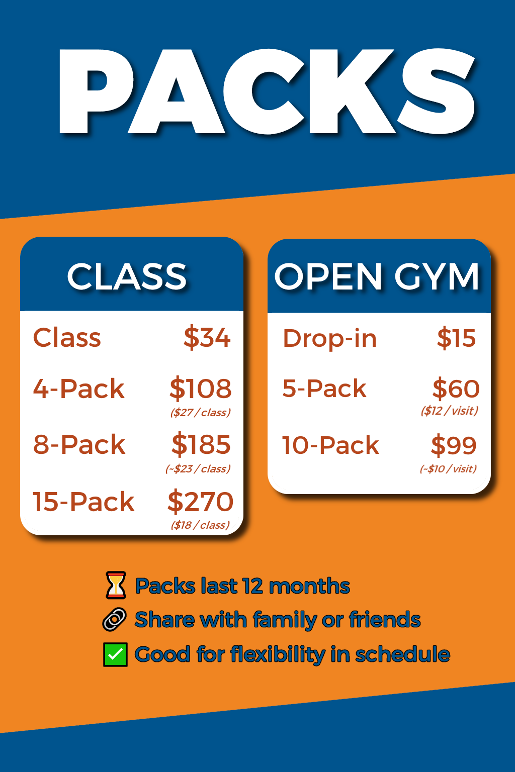 Drop-in to our regular class schedule at any time. No weekly commitment.